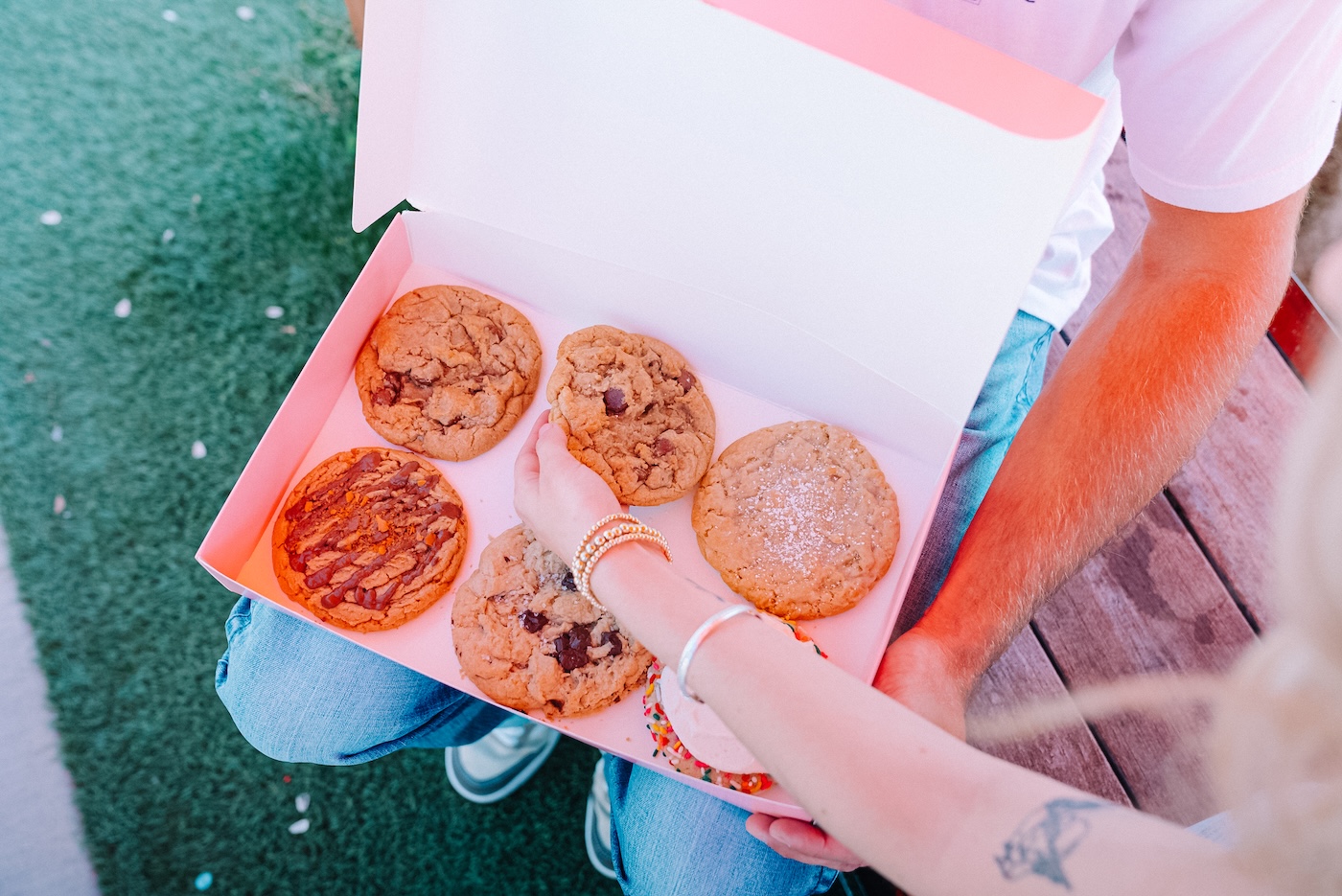 Crumbl is the nationwide name everyone knows, built around a rotating weekly menu of gourmet cookies served fresh, warm or chilled depending on the flavor. Specialty drops every week alongside the core staples mean the menu never looks the same twice. A natural grab-and-go stop after dinner or anytime you need something sweet.